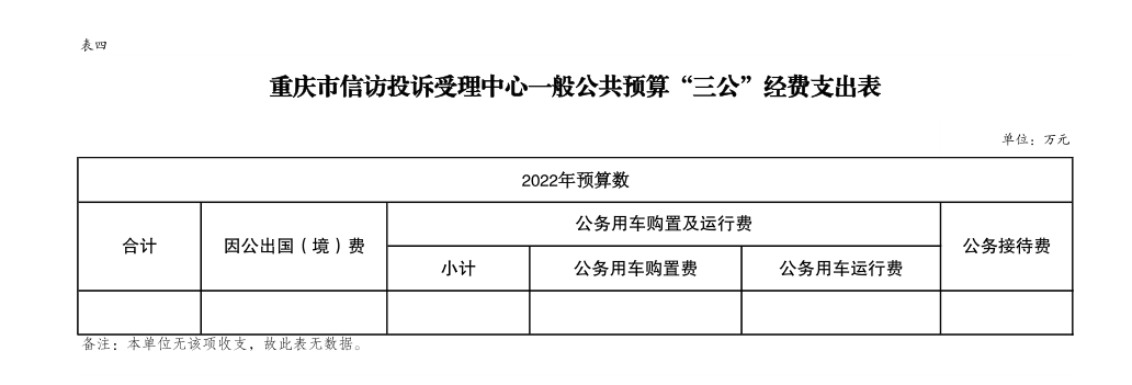 2022年“三公”经费预算0万元,与2021年持平。其中:因公出国(境)费用0万元,与2021年持平;公务接待费0万元,与2021年持平;公务用车运行维护费0万元,与2021年持平;公务用车购置费0万元,与2021年持平。