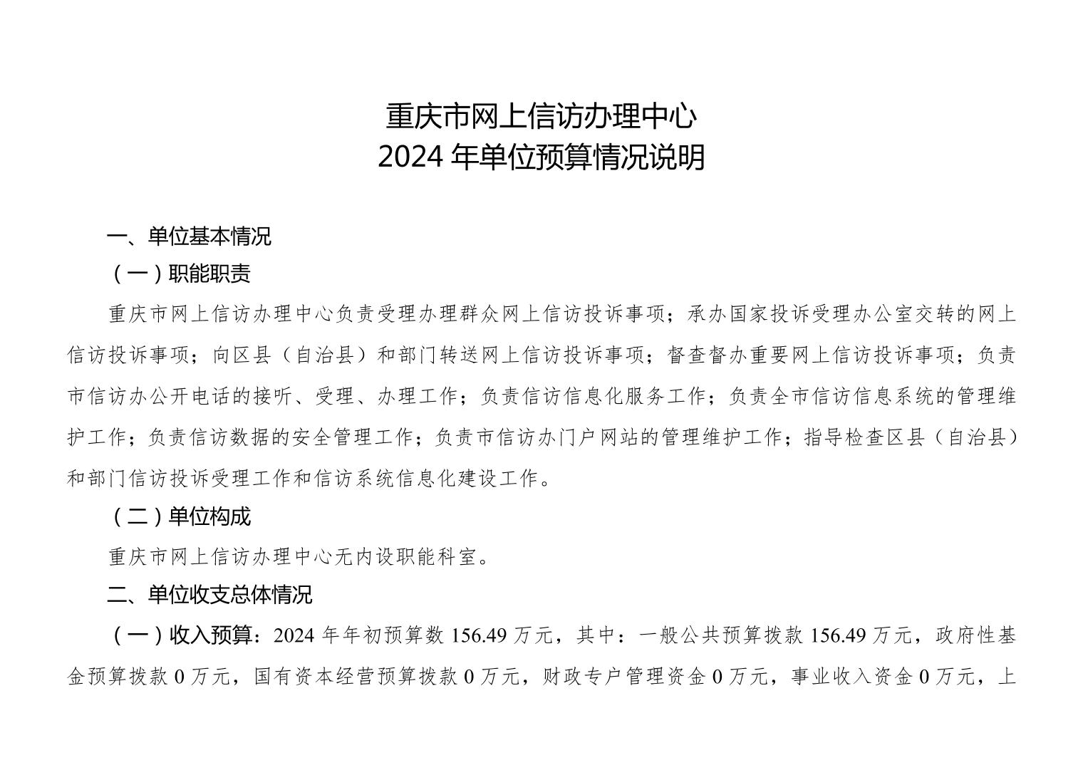 重庆市网上信访办理中心2024年单位预算公开